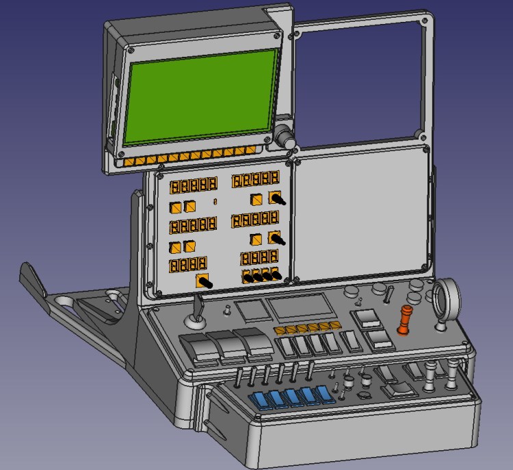 When i started the project i wanted to use 5″ TFT displays for the attitude and the system/weather/GPS-map display, they would have fitted perfectly in the top two panels. But unfortunately it turned out that their resolution is to low to read all the tiny numbers and characters, so i had to change to 7″ TFT displays … and of course they are to big for the already drawn console and of course too big for the printer. But maybe the overhanging panels will look pretty good at the end.