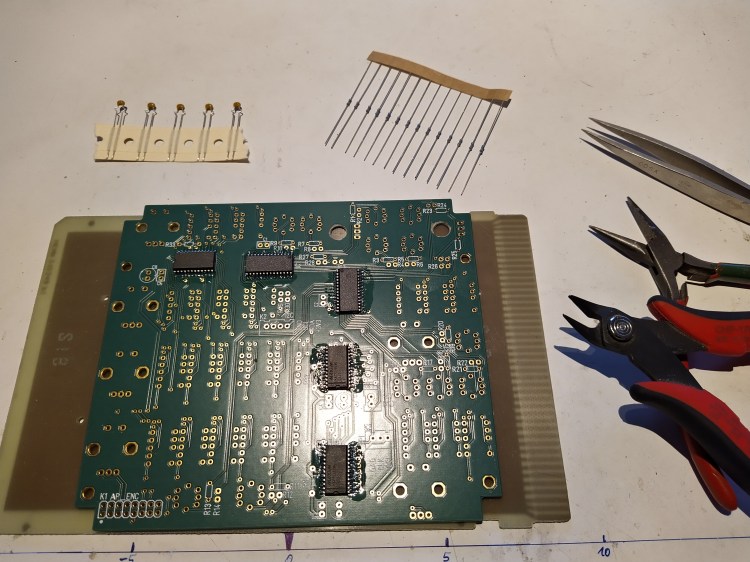 This was a run … the courier brought the blank PCB on friday evening, 24 hrs later it was already assembled and soldered. Had to print again the front panel, i forgot the cutouts for the rotary encoders on the backside. Now everything fits as expected, and again i won’t do any finishing to the ugly surface of the front panel … not rusty, not dusty, unfinished xD !